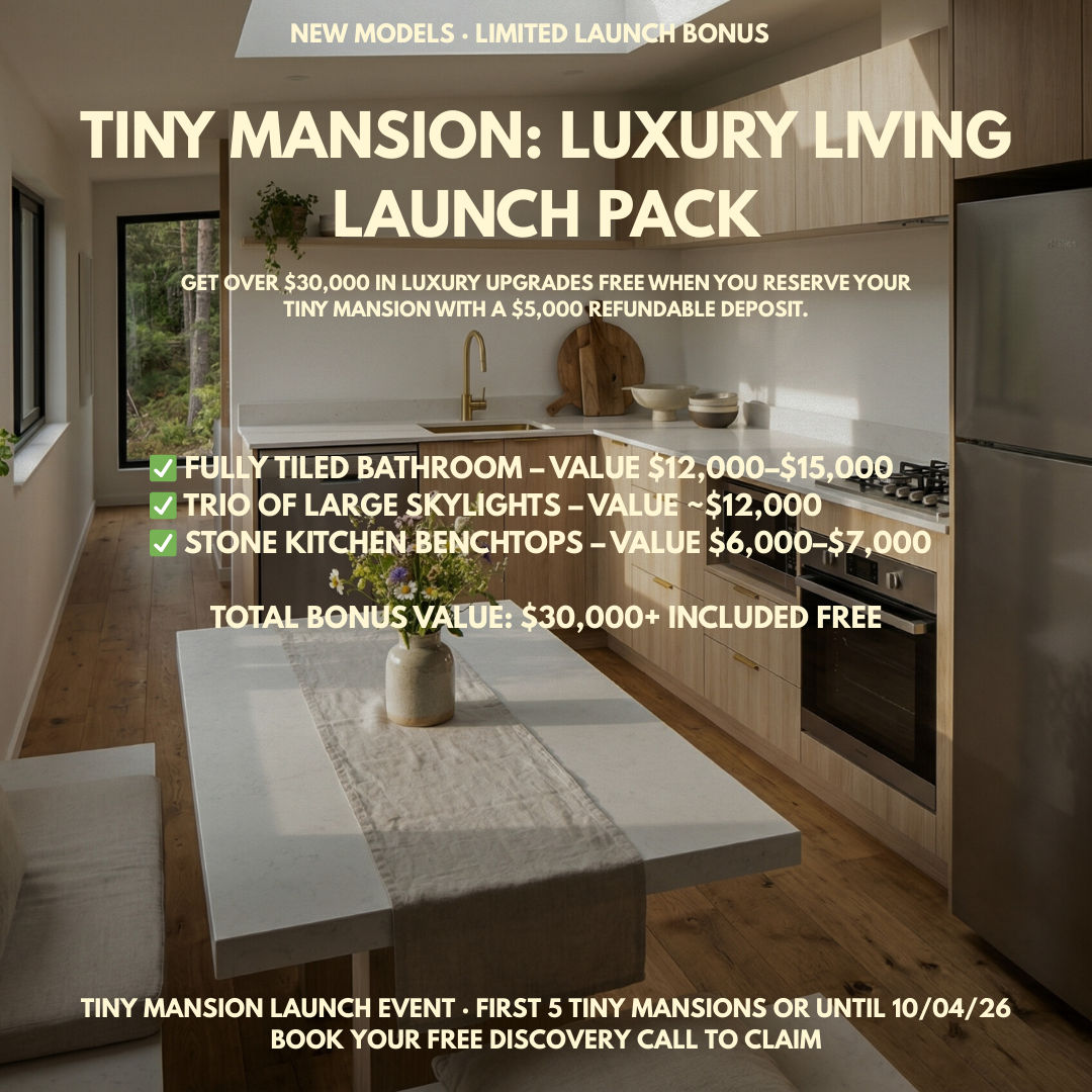 Book a free 15‑minute discovery call. We’ll talk through your land, budget, and timeline, answer council / off‑grid questions, and recommend the best tiny home options for your situation.